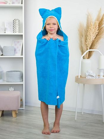 Накидка детская с капюшоном "КОТИКИ" 110*70 см, лазурный