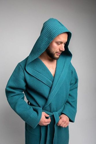 Халат вафельный с капюшоном, два цвета, малахит