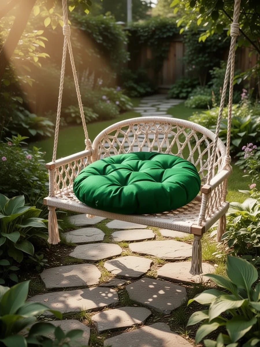 Универсальный размер: 60×60 см — идеально ложится в стандартные посадочные места большинства садовых качелей, кресел-коконов и подвесных кресел.