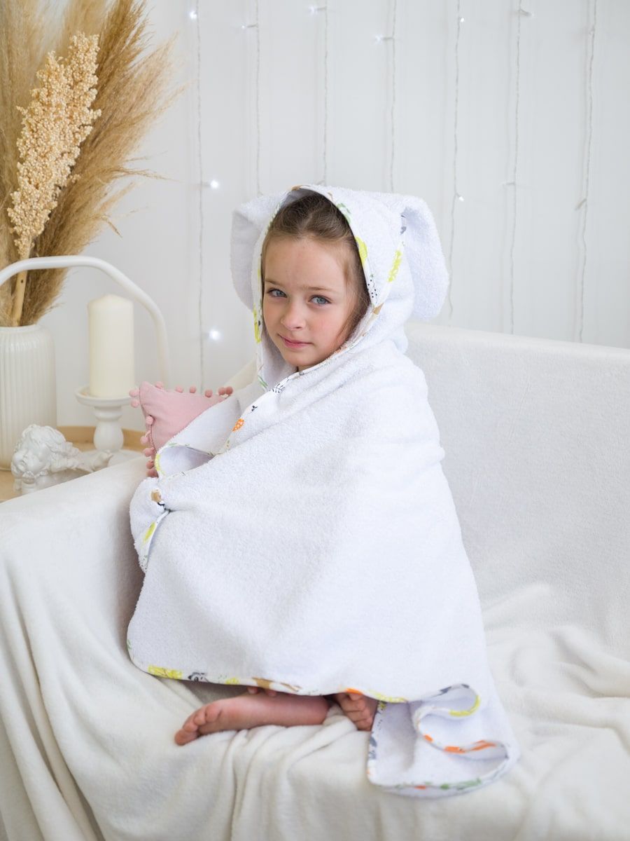 Полотенце уголок выполнено из высококачественного махрового полотна 100% хлопок. Полотенце отлично впитывает влагу и быстро сохнет.